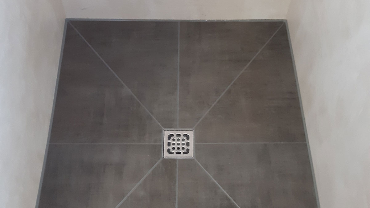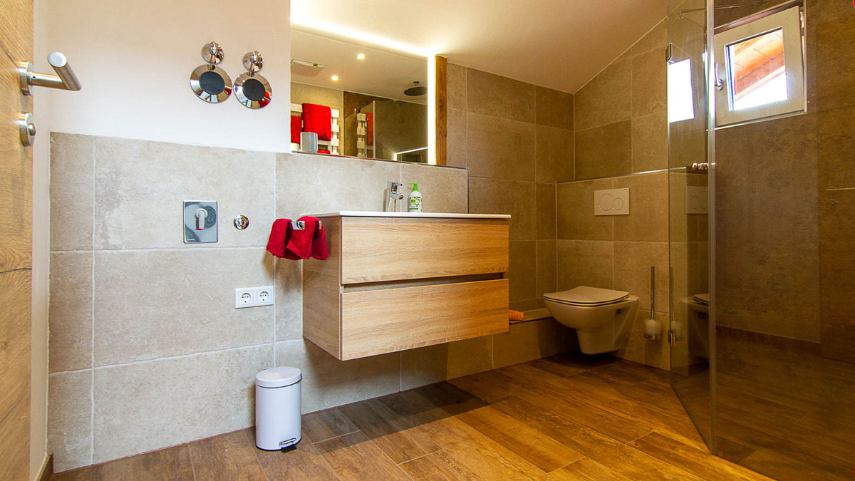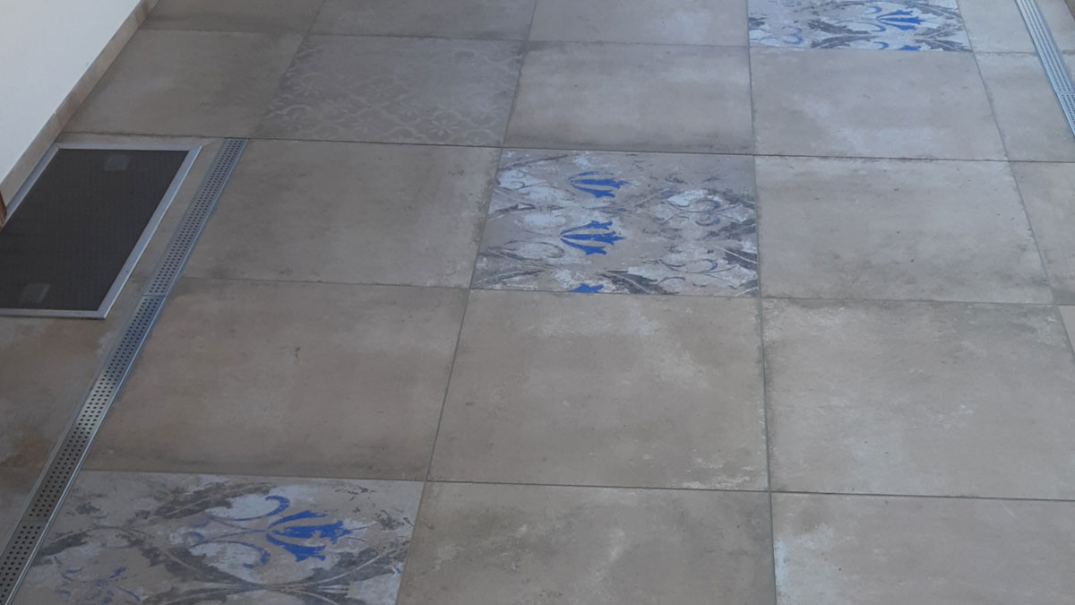 Mit 2 cm starken Fließen (Feinsteinzeug)